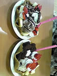 +バナナ、イチゴ、生クリーム、ワッフルの入れ物もあってかなりのボリューム。マジで腹壊すかと思った。